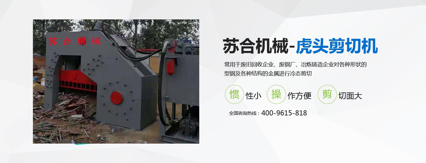 虎頭剪具有體積小、重量輕、慣性小、噪音低、動作平穩(wěn)、操作方便、靈活、剪切斷面大、剪刀口調整方便等優(yōu)點,操作使用安全。常用于廢舊回收企業、廢鋼廠、冶煉鑄造企業對各種形狀的型鋼及各種結構的金屬進行冷態(tài)剪切。剪切機的用途就是用來剪切定尺、切頭、切尾、切邊、切試樣及切除軋件的局部缺陷等。 滑縣蘇合機械制造有限公司性能穩(wěn)定,操作簡單。歡迎來電咨詢 <了解更多>